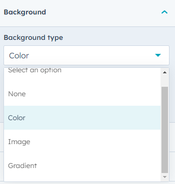 - Add Backgound with multipal option (Color only, Image with overlay, and Gradient)